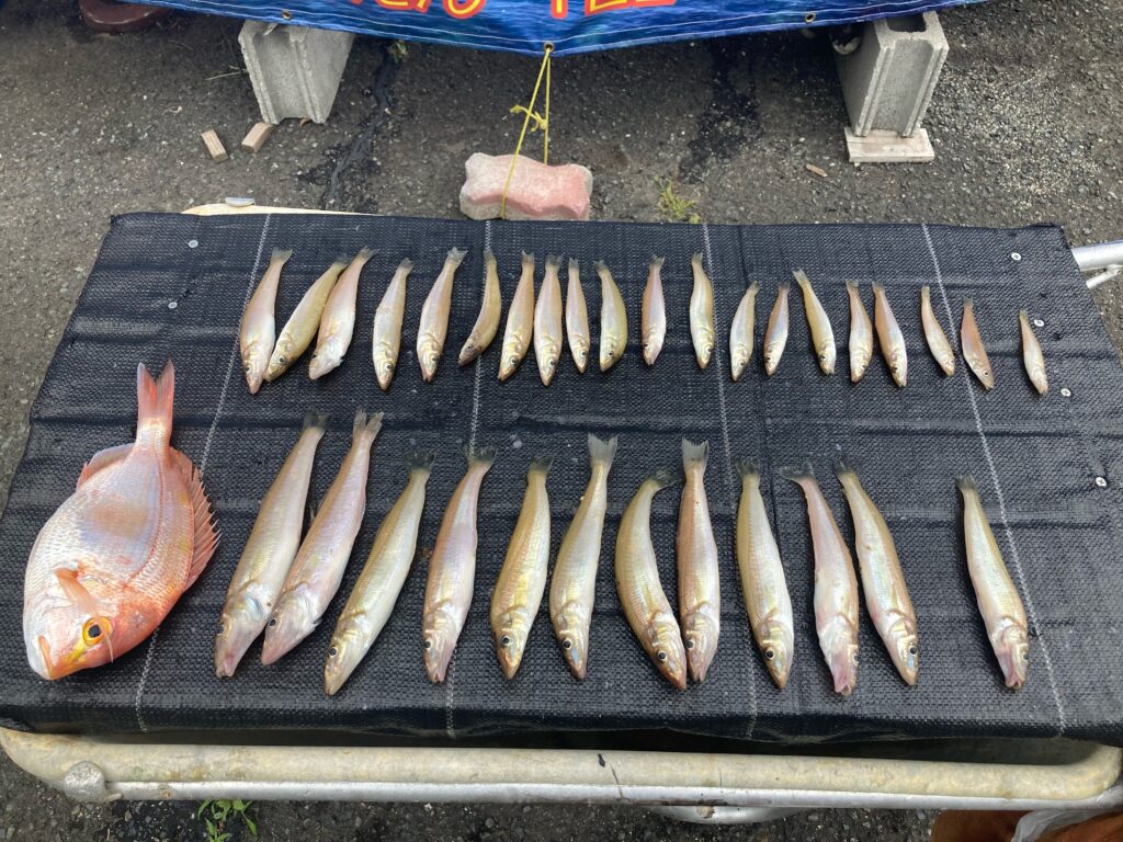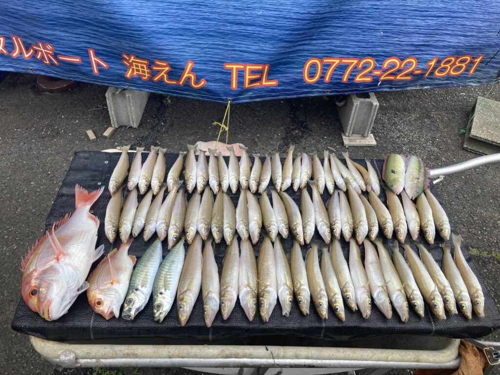 釣果 釣果 6/8(木)中潮 2023年6月8日 2023年6月8日 名古屋市河本様(船外機) カワハギ4匹・キス45匹・メゴチ2匹 京都市寺田様(手漕ぎ) レンコダイ・キス32匹 彦根市田中ご夫妻様(船外機) レンコダイ2匹・アジ2匹・キス68匹・ベラ2匹 キスは良型揃いでした 大津市柴田様(船外機) ガシラ2匹・キス25匹・ベラ4匹