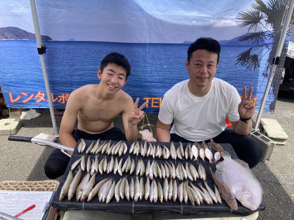 釣果 7/30(日)中潮 2023年7月31日 2023年8月1日 YouTuberレッツ冒険様(船外機) キス44匹・カワハギ 好青年のお二人です。皆さん応援お願いします。 https://youtube.com/@lets1659 舞鶴市秋保親子様(船外機) キス93匹・ヒラメ38㎝・チャリコ4匹・ワニゴチ 堺市堀野様 伊豆野様(船外機) キス30匹 神戸市長男様 下宿生登偉君(船外機) サバ20匹・・最長35㎝