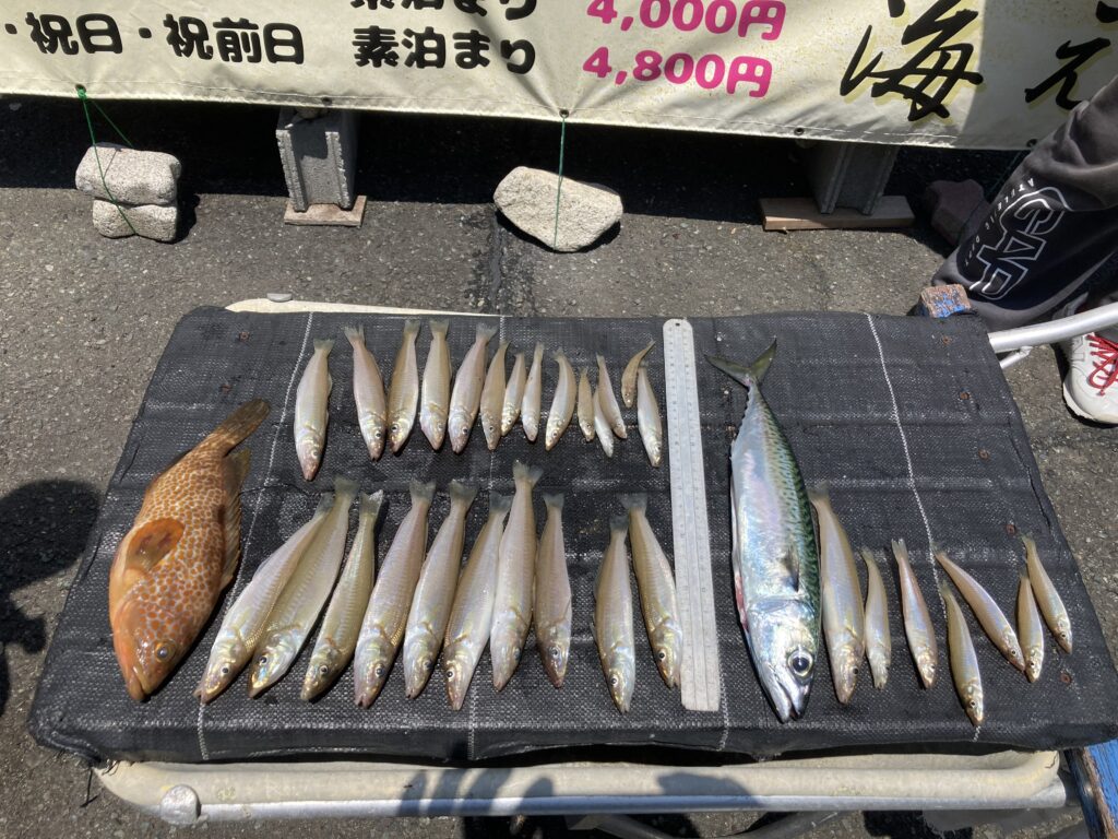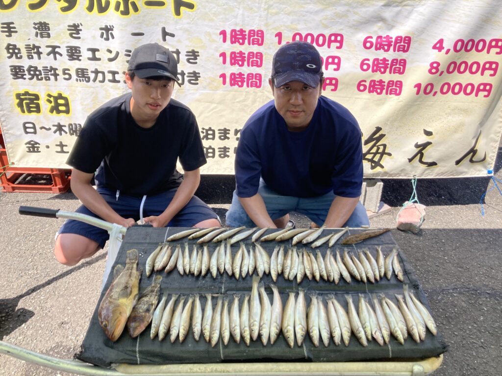 釣果 釣果 5/28(水)大潮 2025年5月28日 2025年5月28日 当日は前半穏やか10時ごろから北東の風3~4ⅿと速い流れの中での釣行でした 吹田市 平瀬様(手漕ぎ) キス…最長24㎝ 良型多数でした 京都市 本田様(船外機) キス良型混じり 京都市 森ご夫妻様(船外機) キス・メゴチ・ベラ 納得のできない釣果だったそうです 京都市寺田様 康様(船外機) アコウ・キス良型多数・サバ