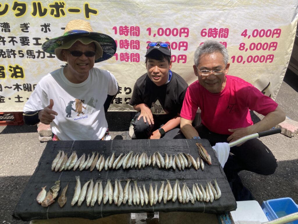 釣果 釣果 7/13(日)中潮 2025年7月14日 2025年7月14日 尼崎市 杉浦family様(船外機) キス良型混じり・ベラ (#^^#)(^^)v 大阪市 垣内親子様(船外機) アコウ・ベラ・ガシラ・キス v(^^)v(#^^#) 大阪市 後久様(船外機) キス良型混じり V(^.^) 京都市吉田様 大津市中島様(船外機) 京都市平尾様(手漕ぎ) チャリコ・アオハタ・メゴチ・キス・ベラ 南丹市 木戸様 塩内様(手漕ぎ) 初ボート釣り、最初は不安でしたが時間いっぱい楽しんでくれました (^^)v(^^)!