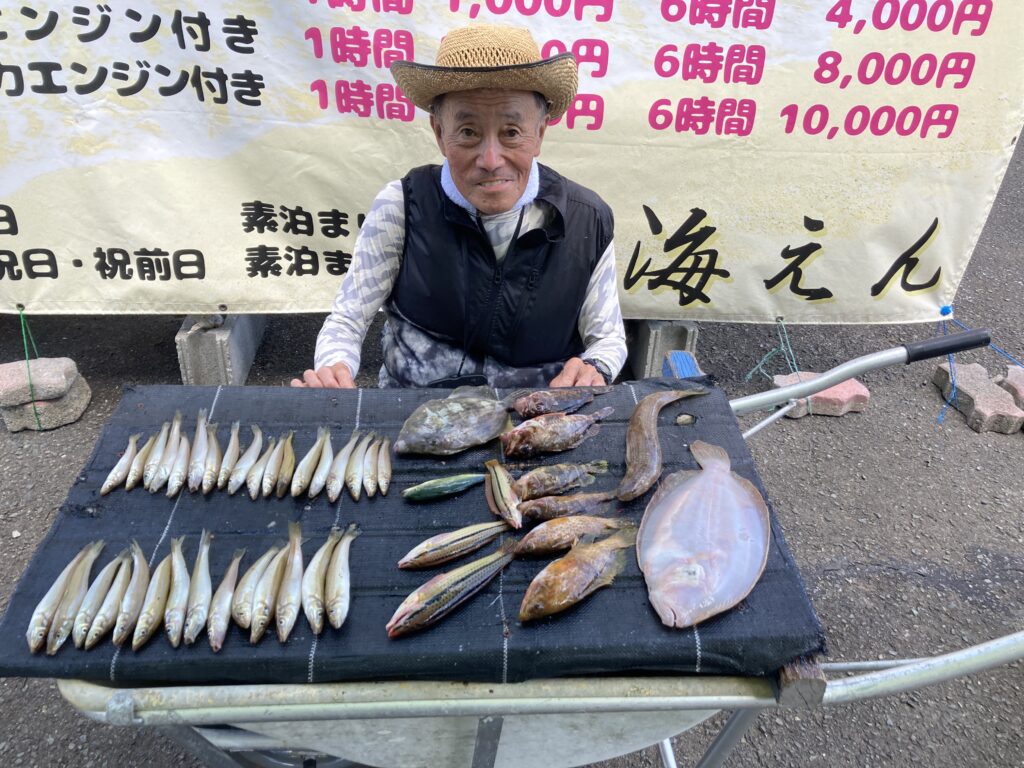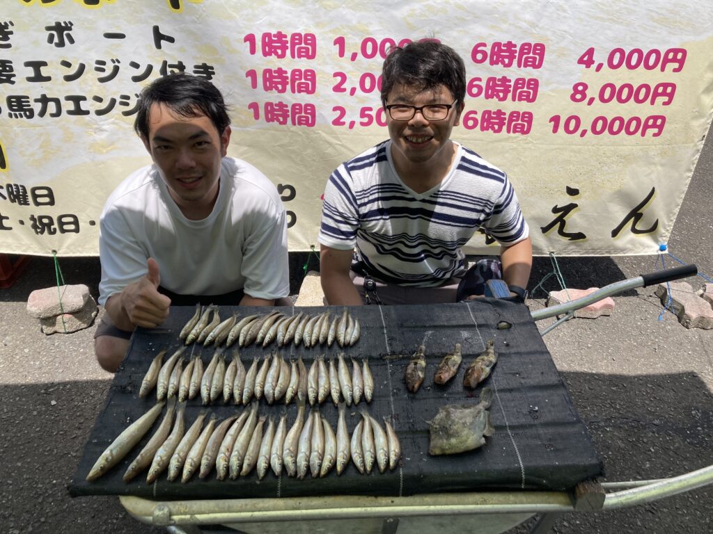 釣果 釣果 7/25(金)大潮 2025年7月26日 2025年7月26日 宝塚市 幸島ご夫妻様(船外機) キス良型混じり・カワハギ・ベラ宿泊、レンタルボートありがとうございました。初海えんでこの釣果! 枚方市 橋本様(船外機) キス・ベラ・キジハタ・ヒラメ・カワハギ・アオハタ・エソ 神戸市上原様 宇納様(船外機) キス・カワハギ・アオハタ 初海えんでこの釣果!ありがとうございました