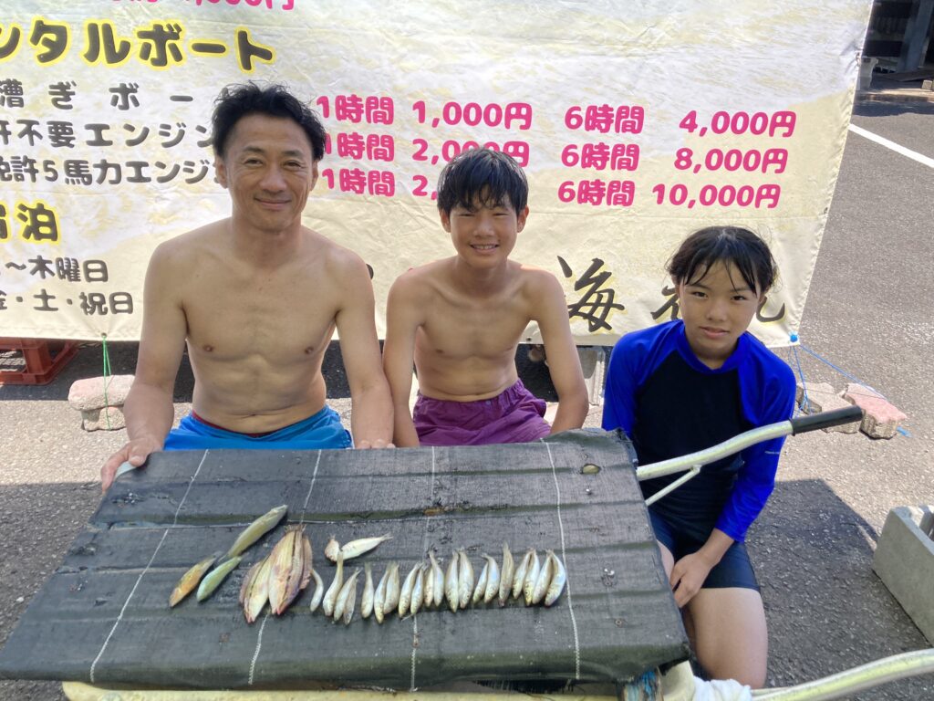釣果 7/24(木)大潮 2025年7月26日 2025年7月26日 茨木市 足立様 土肥様(手漕ぎ) キス最長26㎝・カワハギ・アオハタ さて問題です!キスは何匹いてるでしょうか? 京都市 松藤様 ニッキー様(船外機) 連泊・レンタルボートありがとうございましたm(__)m 西宮市 藤本親子様(船外機) 連泊・レンタルボートありがとうございましたm(__)m