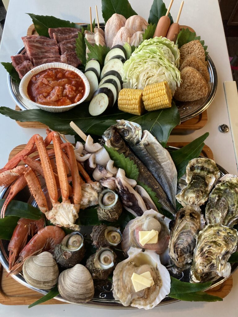 お知らせ お知らせ バーベキュープランのご案内 2026年4月27日 ご好評をいたたいてますバーベキュープランのご案内です。 海鮮を中心に、国産黒毛和牛、国産鶏肉などをお腹満腹のコースを提供しております。日帰りでのご利用も可能です。週末は込み合いますので早い目のご予約をおすすめします。(1人前4.980円 写真は2人前です)...